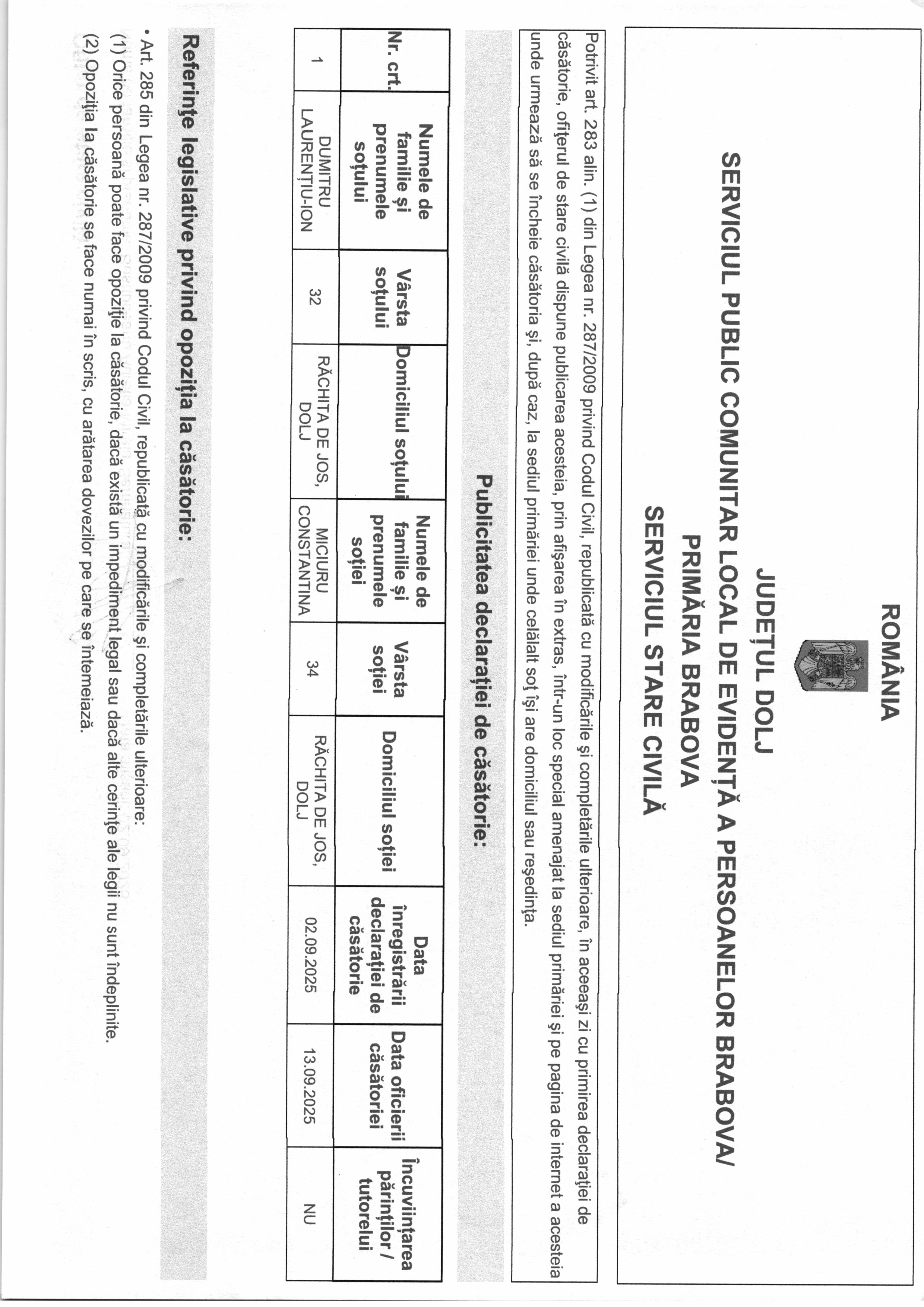 Publiocatie declaratie casatorie Balasa Mihai Iulian cu Stancu Paulina Lavinia- Cristina